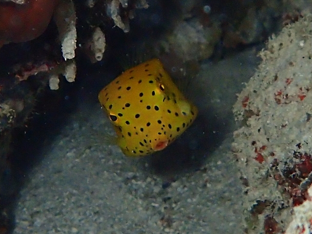体の黒点が目より小さいことと、たまに白い斑が混じっていることがポイントです。