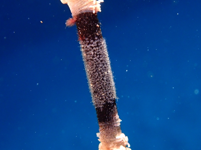 ムチカラマツの共肉をはいで卵を産み付けます。