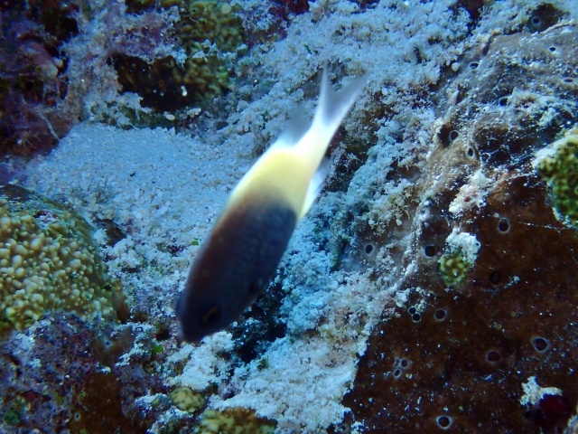 体色が体側中央で分かれて、前方が暗色、後方が淡色です。