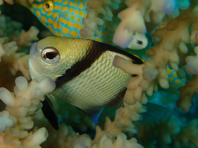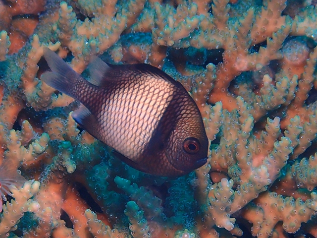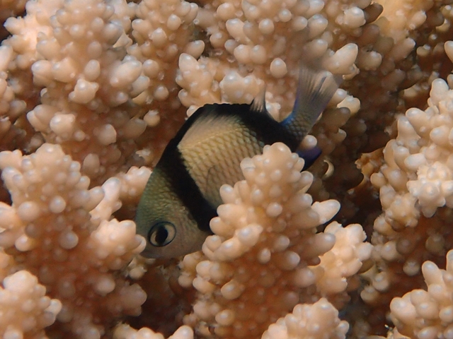 体長は6-8cm程度で、サンゴ礁域に生息、危険を感じるとサンゴの間に隠れます。