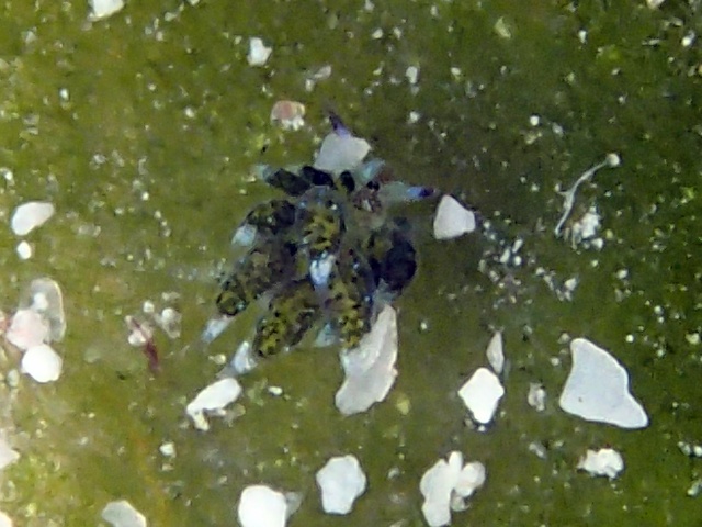 体長は7mm前後の小型で、体地色は半透明の白色です。